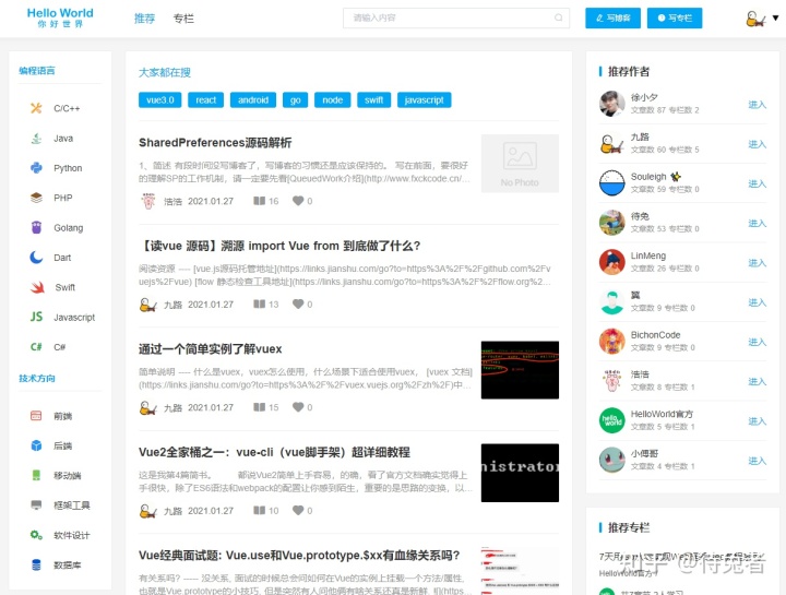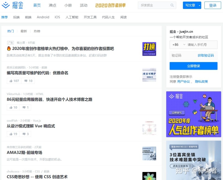 掘金成立于2015年8月,最初來自稀土,是稀土的一個子板塊。沒想到稀土并沒有走紅,掘金卻作為一個技術分享網站走紅,所以創始人明明立即調整方向,大力發展掘金。去年,掘金也開設了自己的專欄和小冊子,慢慢從一個技術文章分享網站轉型為綜合性技術社區,期待后續發展。
